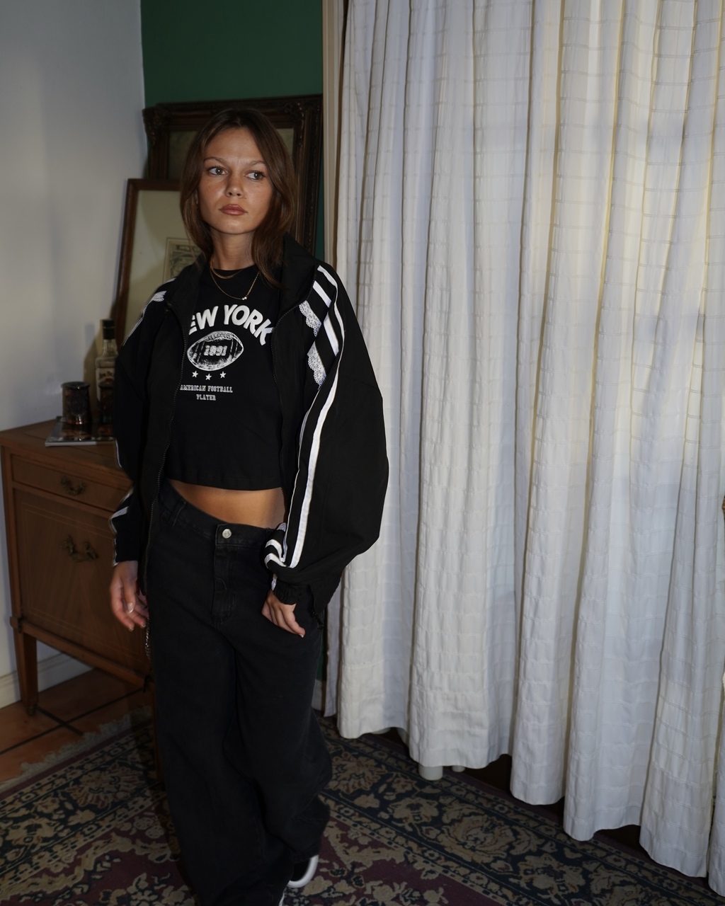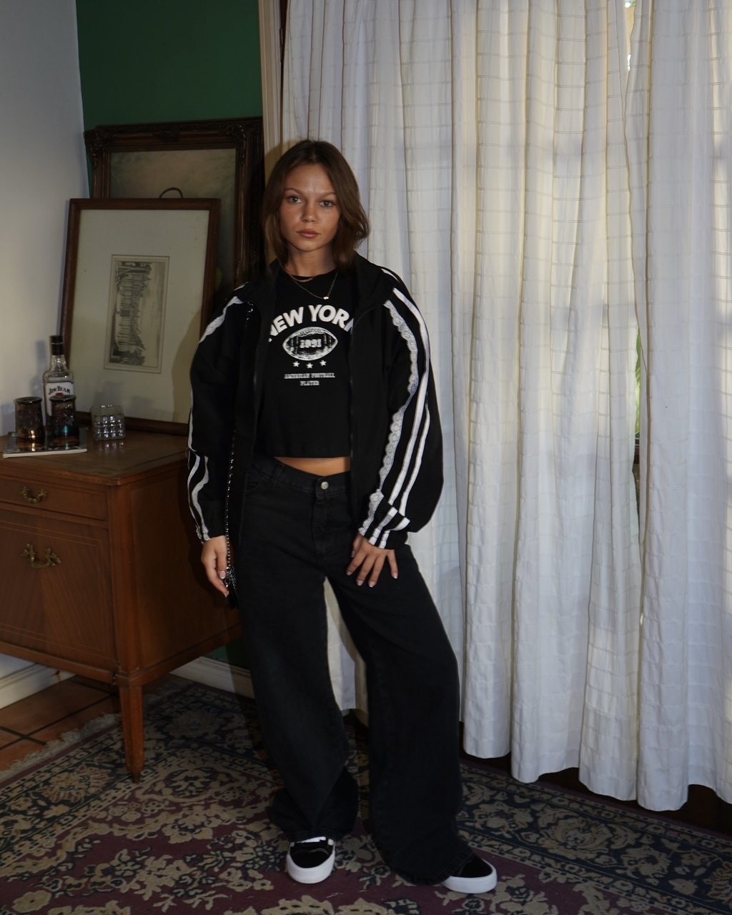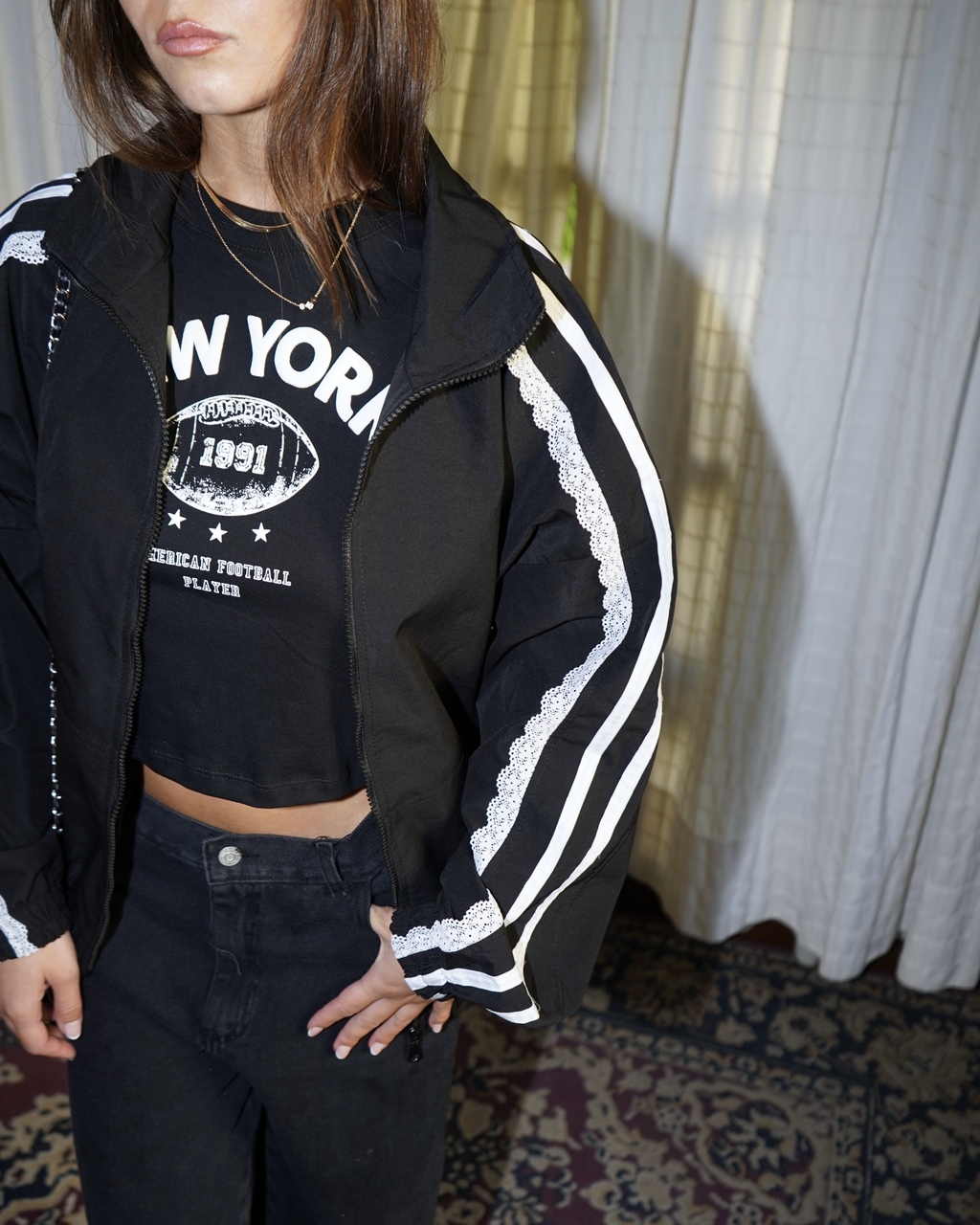 Campera tipo bomber, con detalles en puntilla que la hacen mega canchera y femenina